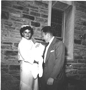 Gertrude Marion Heilmann Gill and Earl Lamp, my Godparents hold his godson Mikey at the church |